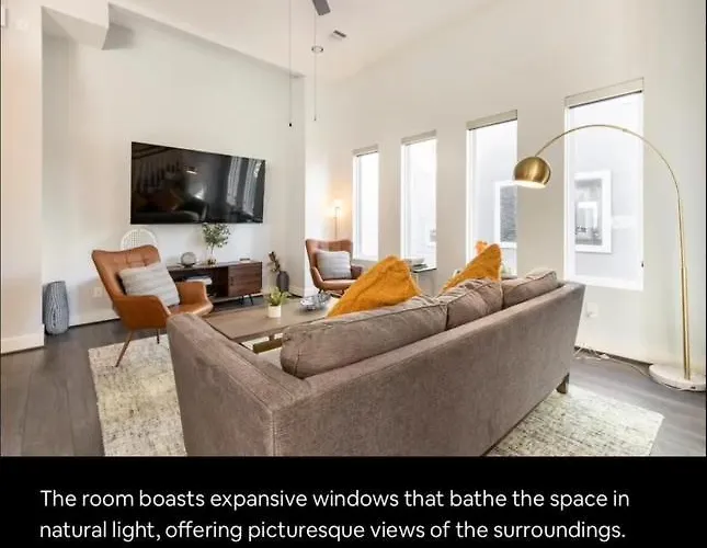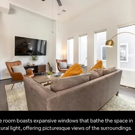 Welcome to the Sophisticated Urban Retreat With Skyline Views Home, a luxurious sanctuary that perfectly blends modern elegance with unparalleled city access. Nestled just 20 km from William P. Hobby Airport and a mere 5 km from the vibrant cultural hub of Ensemble/HCC, this retreat is ideally suited for travelers seeking both comfort and convenience in their urban exploration.